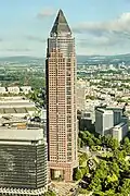 Panorama urbano a parti da Catedral de Frankfurt Catedral de Frankfurt Banco Central Europeu Messeturm Römerberg Städel e Rio Main Alte Oper Höchst am Main | |