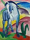 ![]() | 1911 | Blaues Pferd I | Cabalo azul | Óleo sobre tela 112 cm. × 84,5 cm. | Lenbachhaus |