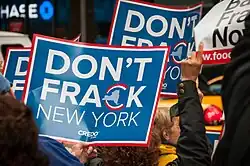Exxon Mobil, Chevron Corporation e ConocoPhillips veicularam anúncios, entre 2011 e 2012, que descreviam os benefícios econômicos e ambientais do gás natural, argumentando que o fracking é uma técnica segura.[143]