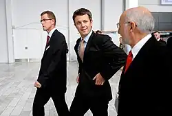 - ↑ Krabbe, Lars (9 de outubro de 2009). «Kronprins mødt af byge af kritiske spørgsmål» (em dinamarquês). Jyllands-Posten. Consultado em 25 de agosto de 2015