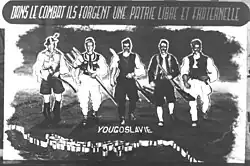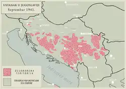 A Segunda Guerra Mundial no Reino da Iugoslávia (também chamada de Frente Iugoslava) começou em 6 de abril de 1941, quando o país foi invadido e rapidamente conquistado pelas forças do Eixo e dividido entre Alemanha, Itália, Hungria, Bulgária e seus regimes clientes. Pouco depois de a Alemanha atacar a URSS em 22 de junho de 1941, [25] os Partisans Iugoslavos republicanos liderados pelos comunistas, sob ordens de Moscou, [25] lançaram uma guerra de guerrilha de libertação lutando contra as forças do Eixo e seus regimes fantoches estabelecidos localmente, incluindo o Estado Independente da Croácia (NDH) e o Governo de Salvação Nacional da Sérvia no território da Sérvia ocupado pelos alemães. Foi apelidada de Guerra de Libertação Nacional e Revolução Socialista na historiografia comunista iugoslava do pós-guerra. Simultaneamente, uma guerra civil multifacetada foi travada entre os Partisans Comunistas Iugoslavos, os Monarquistas Sérvios Chetniks, os Ustaše e a Guarda Nacional Croata aliados do Eixo, o Corpo de Voluntários Sérvios e a Guarda Estatal da Sérvia, a Guarda Nacional Eslovena, bem como a Guarda Nacional Russa aliada aos nazistas. [26]