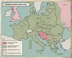 Tanto os partisans iugoslavos quanto o movimento Chetnik inicialmente resistiram à invasão do Eixo. No entanto, depois de 1941, os Chetniks colaboraram extensa e sistematicamente com as forças de ocupação italianas até à capitulação italiana, e depois também com as forças alemãs e Ustaše. [26] [27] O Eixo montou uma série de ofensivas destinadas a destruir os partisans, chegando perto de fazê-lo nas Batalhas de Neretva e Sutjeska na primavera e no verão de 1943.[28]