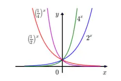 Chama-se função exponencial a função tal que em que , . O número é chamado de base da função. A função exponencial pode ser crescente ou decrescente a depender do valor da base. Se , a função é crescente. Caso a função é decrescente.[1][2]