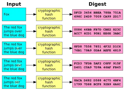 Muitas funções hash criptográficas são projetadas para receber uma cadeia de caracteres de qualquer tamanho como entrada e produzir um valor hash de tamanho fixo.