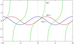 Historicamente, as funções trigonométricas eram frequentemente combinadas com logaritmos em funções compostas como o seno logarítmico, o cosseno logarítmico, a secante logarítmica, a cossecante logarítmica, a tangente logarítmica e a cotangente logarítmica.[41][42][43][44]