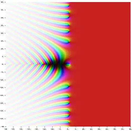 A função zeta, inicialmente definida apenas para números complexos , pode ser estendida para uma função holomorfa em todo o plano complexo . Esse fato pode parecer incomum à primeira vista, pois sua série de Dirichlet não converge mais em muitos pontos. Na realidade, no entanto, a série de Dirichlet (assim como o produto de Euler e a transformada de Mellin por razões de equivalência) não está disponível em todos os lugares para a definição da função zeta.
