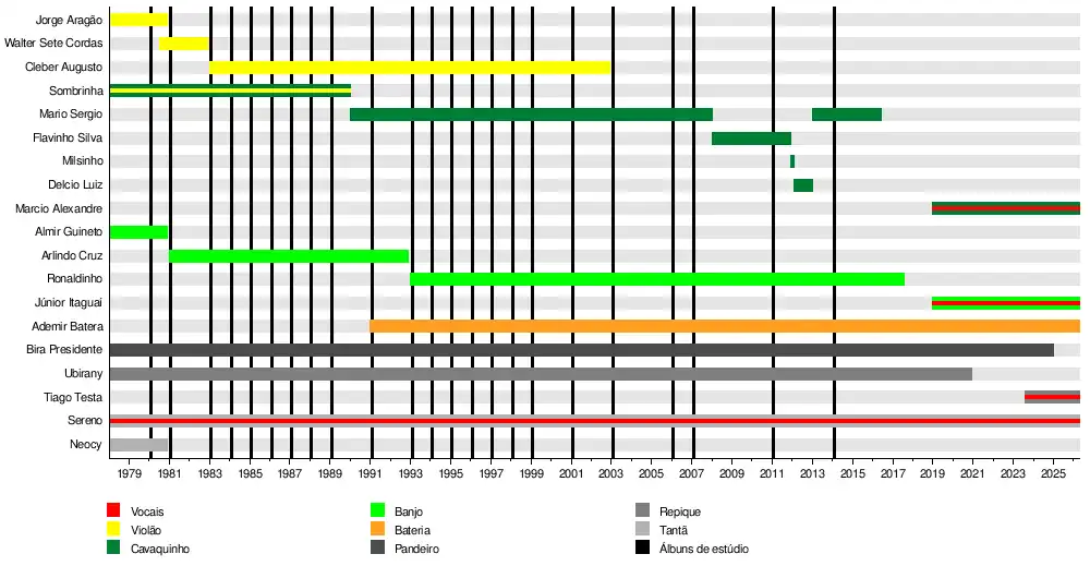 - Arlindo Cruz – banjo (1981–93; morreu em 2025)