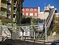 Típico ascensor da cidade de Valparaíso, Chile. O esquema deste repete-se em todos os demais à exceção do Polanco, que é vertical.