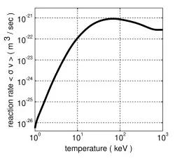 aumenta de praticamente zero em temperatura ambiente, até valores significativos em temperaturas da ordem de 10 - 100 keV. A estas temperaturas, bem acima da energia de ionização típica (13,6 eV no caso do hidrogênio), os núcleos reagentes da fusão existem em um estado de plasma.