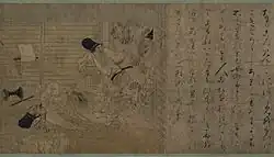 | “ | Uma mulher, talvez, quando você a vê... Mas ele é um homem, Manosuke Todo o retrato de Narihira Nem um nem outro e os dois ao mesmo tempo | ” |