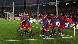 Em meio ao chamado Samba Team,[36] destacou-se também a dupla ofensiva que Ronaldinho fazia com o camaronês Samuel Eto'o (astro do Real Mallorca, mas até então pertencente ao rival Real Madrid[35]), completados pelo sueco Henrik Larsson e o francês Ludovic Giuly (destaque do Monaco vice-campeão da Liga dos Campeões[35]), todos contratados naquela temporada, além dos espanhóis pratas-da-casa Xavi Hernández e o jovem Andrés Iniesta. Mais jovem ainda era a promessa argentina Lionel Messi, outro a vir das bases do clube.