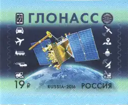 ![]() Selo postal russo de 2016, com um satélite GLONASS. | |