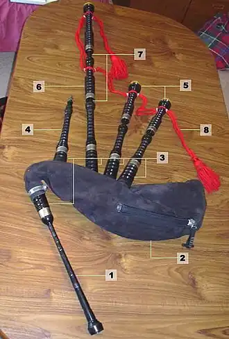 | Tubo melódico pelo qual se digita a música, cuja extremidade geralmente possui uma campânula. | ||