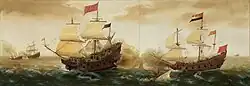 Os Galeões eram grandes navios à vela com vários conveses, usados pela primeira vez como cargueiros armados por europeus do século XVI ao XVIII, durante a Era da Vela, e foram os principais navios recrutados para uso como navios de guerra até as Guerras Anglo-Holandesas em meados do século XVII. Os galeões geralmente carregavam três ou mais mastros com um esquema latino (vela triangular) nos mastros traseiros, eram construídos em estilo "carvel" (casco liso) com uma proeminente popa elevada e quadrada, e usavam planos de vela quadrada em seus mastros de proa e principais.[1]