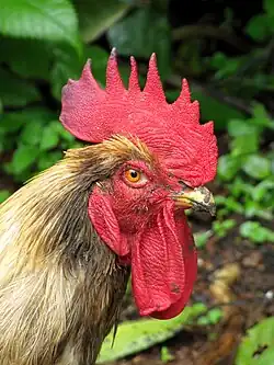 O galo (Gallus gallus) é o macho da galinha, comumente tratado como um animal heráldico. Estes animais, ao longo da história, também foram utilizados num esporte, atualmente ilegal em diversos países, denominado rinha. Um galo juvenil é chamado de frango, galeto ou galispo.[1] Algumas espécies de galo são criadas como aves ornamentais, por suas penas coloridas e brilhantes.