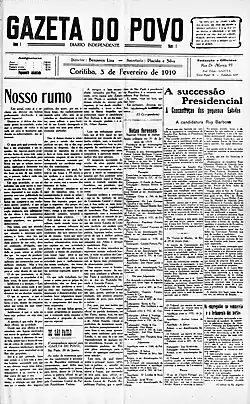 - ↑ «O papel do jornal». Jornal Gazeta do Povo (edição comemorativa de n° 30.000). Consultado em 8 de dezembro de 2012. Arquivado do original em 3 de dezembro de 2013