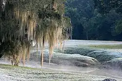 - Vento: a ausência de ventos favorece a formação da geada,[3] pois permite que o ar frio se acumule e fique estagnado próximo ao solo.[5]