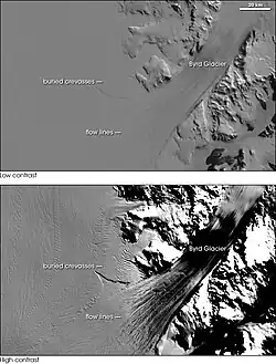 - ↑ «T. Strozzi et al.: The Evolution of a Glacier Surge Observed with the ERS Satellites (pdf, 1.3 Mb)» (PDF)