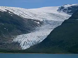 É uma variedade dos glaciares de vale que atinge a planície aos pés da cadeia montanhosa, possuindo assim, e bem definida, uma zona de acumulação e uma zona de transporte.