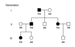 No caso de um albino com um alelo recessivo (aa), o fenótipo depende do outro alelo (Aa, aA, aa ou AA). Uma pessoa afetada que se acasala com um indivíduo heterozigoto (Aa ou aA, também portador) tem 50% de chance de que a descendência seja o fenótipo albino. Se um heterozigoto se acasala com outro heterozigoto, há 75% de chance de passar o gene e apenas 25% de chance de que o gene do albinismo seja exibido. Um indivíduo homozigoto dominante (AA) tem um fenótipo normal e nenhum risco de descendência anormal. Um indivíduo homozigótico recessivo tem um fenótipo anormal e é garantido que passe o gene anormal para os descendentes.