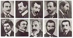 Primeira linha: Krikor Zohrab, Daniel Varoujan, Rupen Zartarian, Ardashes Harutunian e Siamanto