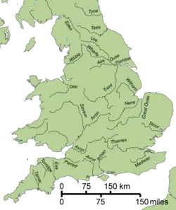 O maior rio da Inglaterra é o rio Severn, que nasce no País de Gales e em grande parte do seu curso forma a fronteira anglo-galesa, desaguando no Canal de Bristol. O maior rio inteiramente dentro da Inglaterra, é o rio Tâmisa, que atravessa a capital, Londres.