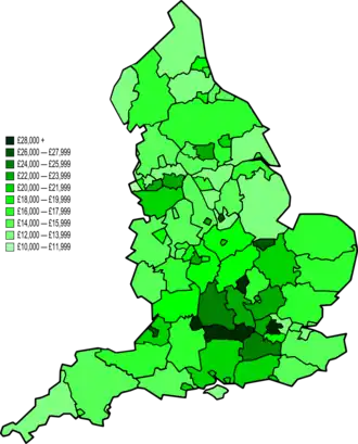 A Inglaterra possui uma das maiores economias da Europa, com um PIB médio per capita de £ 22.907. A economia do país é geralmente considerada como mista (cf. Modelo econômico anglo-saxão), adotando muitos princípios do mercado livre, em contraste com o modelo de capitalismo renano continental europeu. A moeda da Inglaterra é a libra esterlina, também conhecida com GBP.