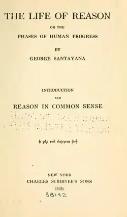 - 1905–1906. The Life of Reason: or the Phases of Human Progress, 5 vols.