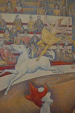 Georges-Pierre Seurat (Paris, 2 de dezembro de 1859 — Paris, 29 de março de 1891) foi um pintor e pioneiro do movimento pontilhista, também chamado divisionismo. A personalidade artística de Seurat era contraposta por qualidades supostamente opostas e incompatíveis: de um lado, a sua sensibilidade extrema e delicada; do outro, uma paixão pela abstração lógica e uma precisão matemática da mente.[1] O seu maior trabalho, Uma Tarde de Domingo na Ilha de Grande Jatte (1884-1886), alterou a direção da arte moderna ao iniciar o neoimpressionismo e é um dos ícones da pintura do século XIX.[2]