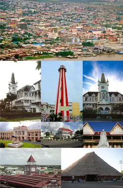 Açúcar, madeiras, cana-de-açúcar, bauxita, ouro e diamantes são exportados através de seu porto. Na cidade fica a Universidade da Guiana, construída em 1963, bem como a Catedral de São Jorge (St. George's Cathedral), bom exemplo da arquitetura vitoriana em madeira. Apesar disso, grande parte da cidade foi destruída nos incêndios de 1945 e 1951, já que muitas das casas e dos edifícios públicos haviam sido construídos em madeira. Atualmente, é repleta de ruas e avenidas arborizadas e apresenta vários canais que providenciam drenagem, já que está assentada abaixo do nível do mar.