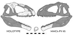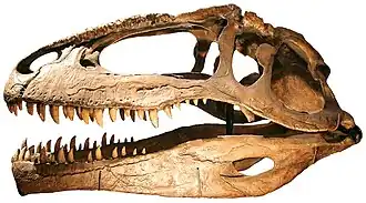 - ↑ Brusatte, S. L.; Sereno, P. C. (2008). «Phylogeny of Allosauroidea (Dinosauria: Theropoda): Comparative analysis and resolution» (PDF). Journal of Systematic Palaeontology. 6 (2): 155–182. doi:10.1017/S1477201907002404. hdl:20.500.11820/5f3e6d44-fea6-468d-81d3-769f8c2830dd
