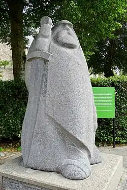 Um bergrisi - o protetor tradicional do sudoeste da Islândia - aparece como apoiante no brasão de armas da Islândia.