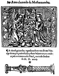 - ↑ Vicente, Gil (1562). Copilaçam de todalas obras de Gil Vicente. a qual se reparte em cinco livros 1 ed. Lisboa: Casa de Joam Alvarez