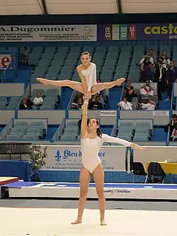 A Ginástica Acrobática na constituição dos seus pares e grupos tem ginastas com diferentes idades e estaturas, aos quais damos três denominações: bases, intermédios e volantes. Os bases normalmente são os elementos mais velhos do par ou do grupo com um estatura mais alta, normalmente mais fortes para facilmente sustentarem e apoiarem o volante. O volante é o outro elemento do par ou grupo normalmente mais novo, com uma estrutura física mais baixa e mais leve para poder facilitar o trabalho em conjunto, permitindo também uma maior longevidade da participação desportiva. Além do mais, esta bela disciplina cria laços de amizade muito fortes entre os parceiros, bem como o espírito de trabalho em grupo e o mais importante de tudo: a confiança entre os parceiros e treinadores que estão lado a lado em equipe.[1]