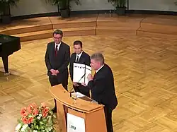 - ↑ «Preisträger 2014: Glenn Greenwald» [Award recipient 2014: Glenn Greenwald]. geschwister-scholl-preis.de. Börsenverein des Deutschen Buchhandels – Landesverband Bayern e.V. n.d. Consultado em 1 de outubro de 2014. Cópia arquivada em 6 de outubro de 2014