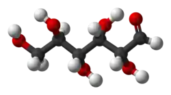 A glicose - também conhecida como glucose ou dextrose - é um monossacarídeo[4] e é um dos carboidratos mais importantes na biologia. As células a usam como fonte de energia e intermediário metabólico. A glicose é um dos principais produtos da fotossíntese e inicia a respiração celular em seres procariontes e eucariontes. É um cristal sólido de sabor adocicado, de fórmula molecular C6H12O6, encontrado na natureza na forma livre ou combinada. Juntamente com a frutose e a galactose, é o carboidrato fundamental de carboidratos maiores, como sacarose, lactose e maltose. Amido e celulose são polímeros de glucose.