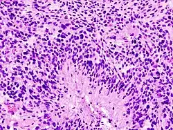 O prognóstico para portadores desse tipo de tumor é reservado e o tempo de sobrevida médio após o diagnóstico é de 12 a 15 meses (somente 3 a 5% dos pacientes sobrevivem mais de cinco anos) e a doença é sempre fatal.[3][4] Sem tratamento, a sobrevida é de cerca de 3 meses.[11] Estima-se que entre 3.000 a 100.000 pessoas desenvolvam a doença anualmente.[4] A doença manifesta-se principalmente em pacientes com mais de 60 anos de idade e é mais frequente na população masculina.[3][4]