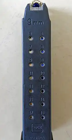 - ↑ Glock magazines Arquivado em 2010-12-08 no Wayback Machine