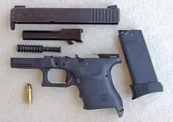 - ↑ Sweeney, Patrick (30 de maio de 2008). «How the Glock Functions». The Gun Digest Book Of The Glock. Iola, Wisconsin: Gun Digest Books. p. 23. ISBN 978-1-4402-2656-4