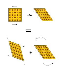Uma causa comum de tensão não hidrodinâmica é a submissão do protólito a uma força de cisalhamento extrema, uma força de deslizamento semelhante a empurrar o topo de um baralho de cartas em uma direção e a base na outra.[5] Essas forças esticam a rocha como um plástico, e o material original é espalhado em folhas. De acordo com o teorema da decomposição polar, a deformação produzida por tal força de cisalhamento é equivalente à rotação da rocha combinada com o encurtamento em uma direção e extensão em outra.[8]
