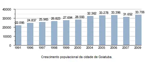 - 1 2 3 Instituto Brasileiro de Geografia e Estatística (IBGE) via G1 Goiás (28 de junho de 2023). «População de Goiatuba (GO) é de 35.649 pessoas, aponta o Censo do IBGE». Consultado em 9 de fevereiro de 2024