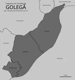 Até 2013, o município da Golegã era constituído por apenas duas freguesias, para uma área de 76,62 km².[5] Nesse ano, no âmbito de uma reorganização das freguesias ocorrida no território do Continente, foi-lhe anexada uma terceira freguesia (Pombalinho), transferida do município de Santarém.[1]