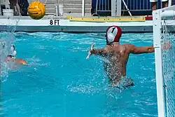 Os goleiros do polo aquático recebem regras específicas a serem seguidas quando dentro da área de cinco metros, incluindo a capacidade de tocar a bola com as duas mãos, a capacidade de ficar em pé e a capacidade de socar a bola com o punho cerrado. No entanto, o goleiro não pode cruzar a linha de meia distância, enquanto os jogadores que não são goleiros podem.