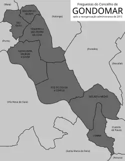 - Gondomar (São Cosme), Valbom e Jovim (Cidade de Gondomar, Cidade de Valbom e Vila de Jovim)