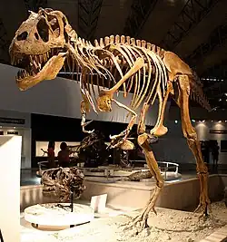 - ↑ Carpenter, Kenneth (1997). «Tyrannosauridae». In: Currie, Philip J.; Padian Kevin. Encyclopedia of Dinosaurs. San Diego: Academic Press. 768 páginas. ISBN 978-0-12-226810-6