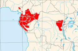 Os gorilas vivem na zona equatorial da África, e as duas espécies estão separadas por 750 km de distância.[15]