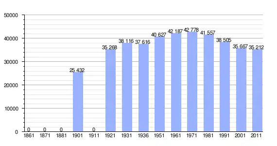 | Variação demográfica do município entre 1861 e 2011[3] |
