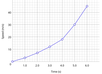 Compreendendo o processo descrito pelos dados na tabela é auxiliado por produzir um gráfico ou gráfico de linha de velocidade em função do tempo. Tal visualização aparece na figura à direita.