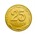 25 kopiyoks | 20,8 milímetros | 2,9 g | Setores reeded e lisos | 1992–2016 | Não emitida desde 1 de julho de 2018.[15] A moeda de 25 kopiika deixou de ter curso legal na Ucrânia e saiu de circulação a partir de 1 de outubro de 2020.[16][17] | |||||