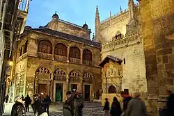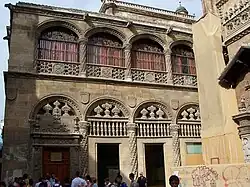 Todos os viajantes e eruditos que visitaram Granada no virar do século XV para o século XVI admiraram os seus edifícios, nomeadamente os reis Joana, a Louca e Carlos V, que gastaram grandes somas de dinheiro na manutenção e outras obras na Alhambra e noutros edifícios de interesse, o que contribuiu para a sobrevivência da sua arquitetura.[34] Isso não obstou que, logo após a conquista se desenvolvesse uma política urbanística de afirmação do novo poder, erigindo grandes edifícios nos espaços mais representativos da cidade muçulmana: a Capela Real, mandada construir em 1504, onde foram sepultados os Reis Católicos em 1521;[35] o Hospital Real, iniciado em 1511; a catedral, cujo projeto foi encomendado em 1506 e cuja cerimónia de colocação da primeira pedra ocorreu em 1523; o Palácio de Carlos V, mandado construir em 1526; a Real Chancelaria, iniciada em 1531; etc.[36]